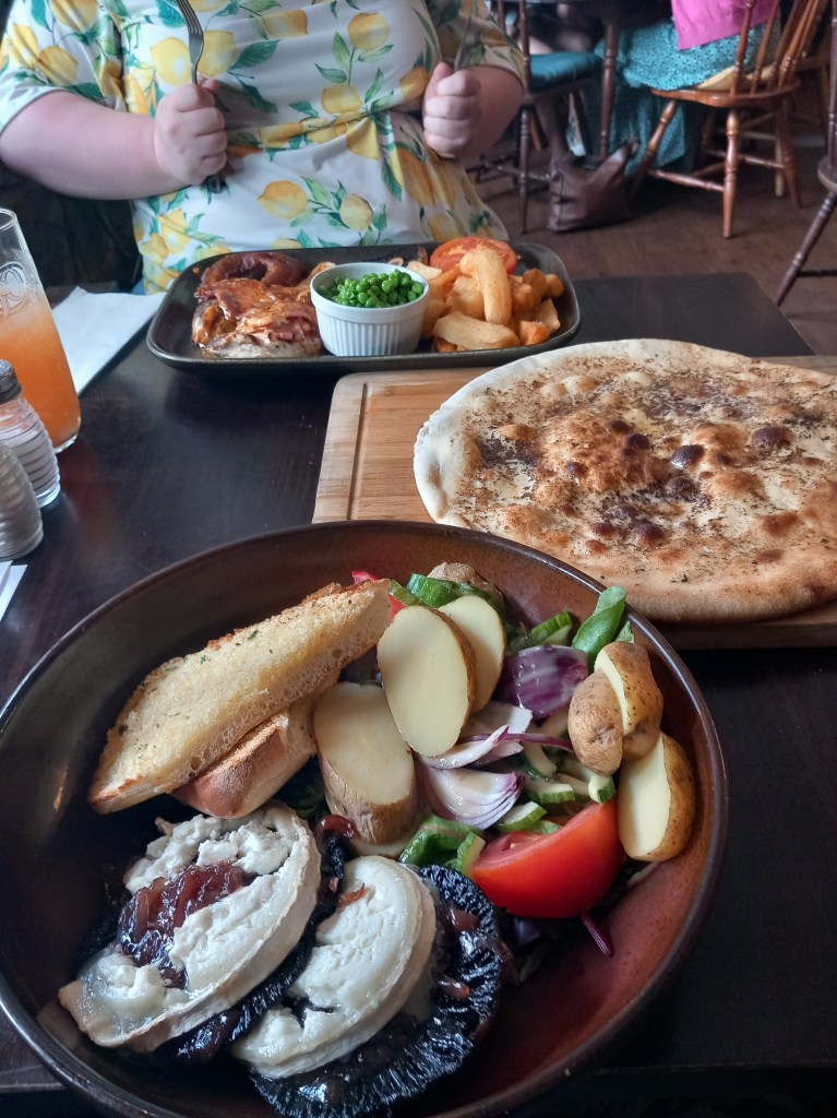 The hostel we stayed at really surprised me how lovely it was, I didn’t expect it to be at all. It was a large gothic mansion – YHA Losehill Hall, with spacious rooms and stunning surroundings. We freshened up before tea at Ye Old Nag’s Head. I had a beaut mushroom and goats cheese salad (I’m a veggie), but we ended up giving half our garlic bread away as we were stuffed with the massive portions, lol… Back at the hostel, we had a couple of drinks and played the board game Labyrinth and Uno… a veggie full English on the way home the following morning!